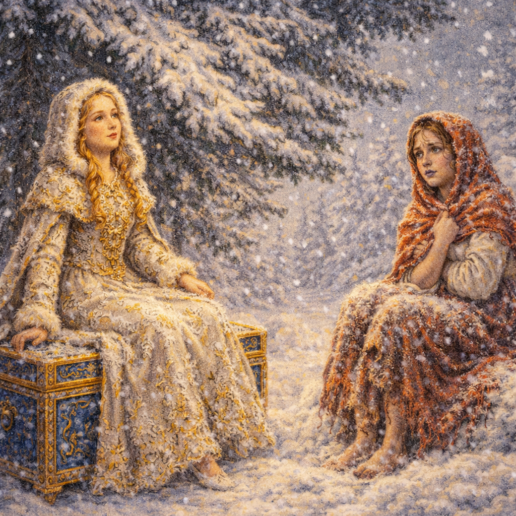 Зимняя народная сказка о терпении, кротости и награде, которая приходит к доброму сердцу.